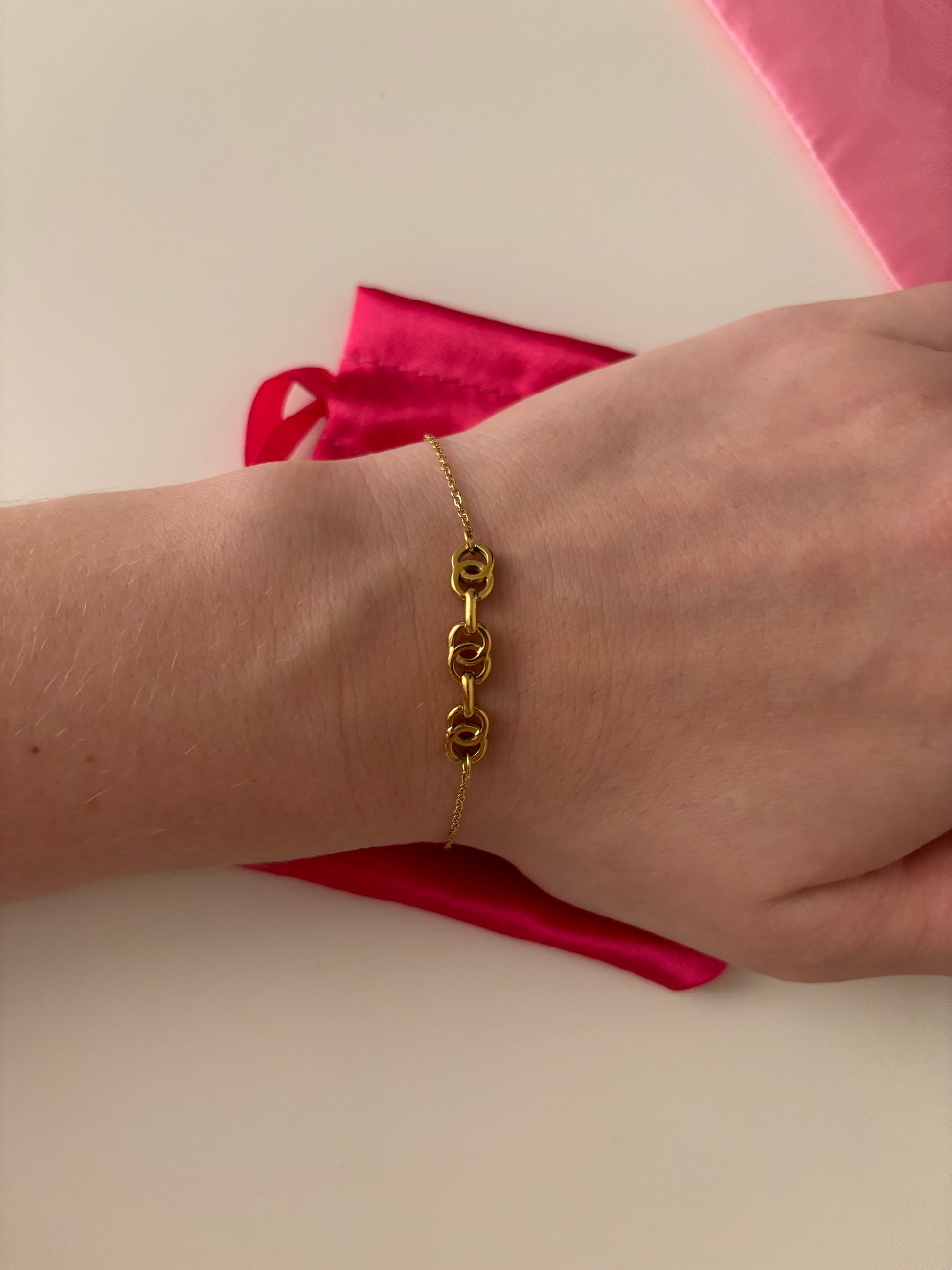 Bracelet chaîne dorée avec maillons au centre . En acier inoxydable.