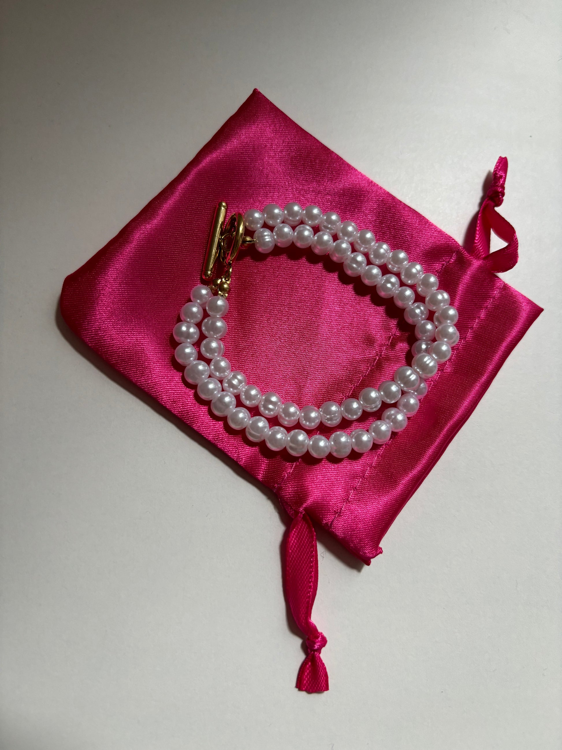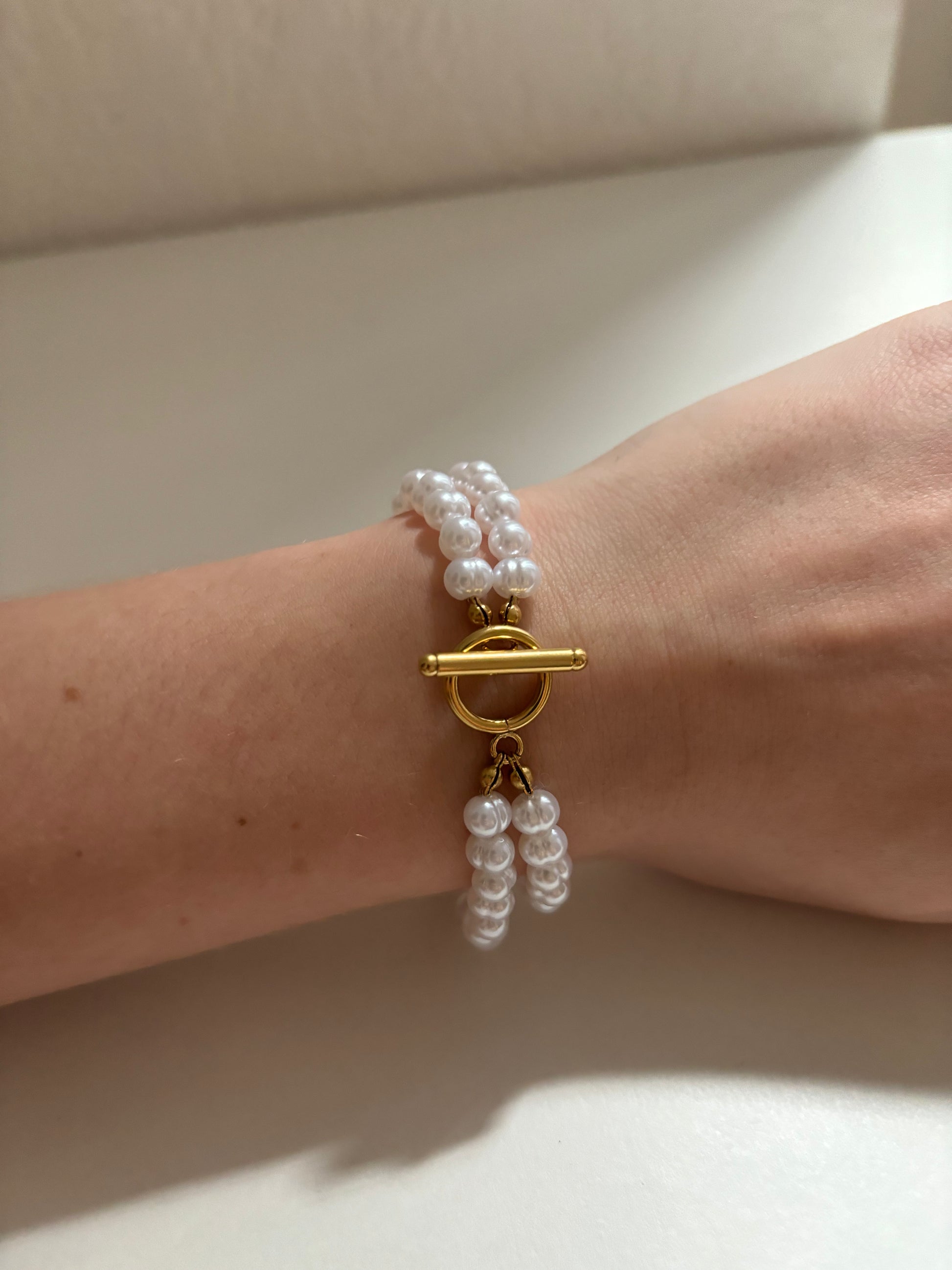 Bracelet double perle avec fermoir. Acier inoxydable et perle synthétique