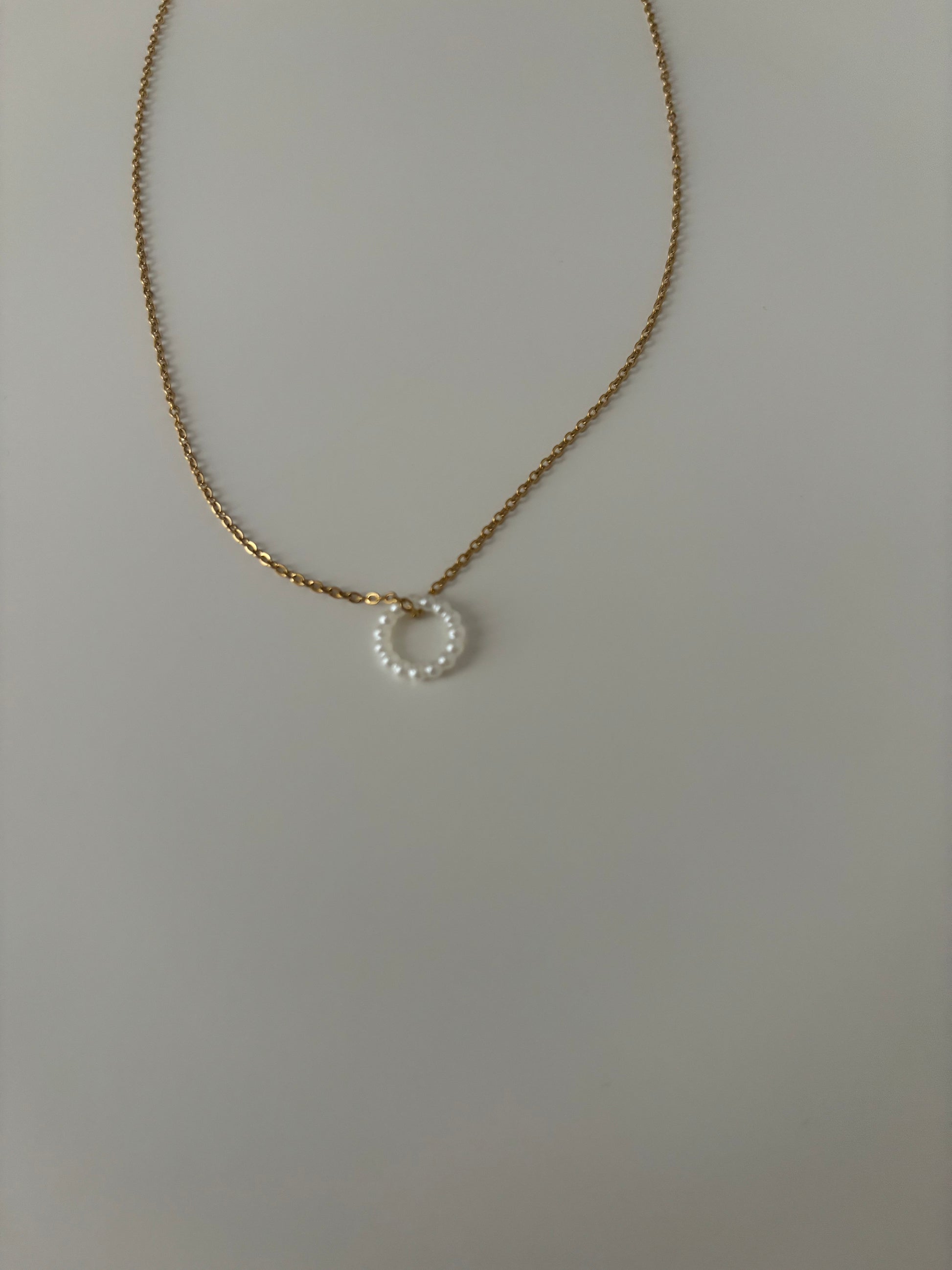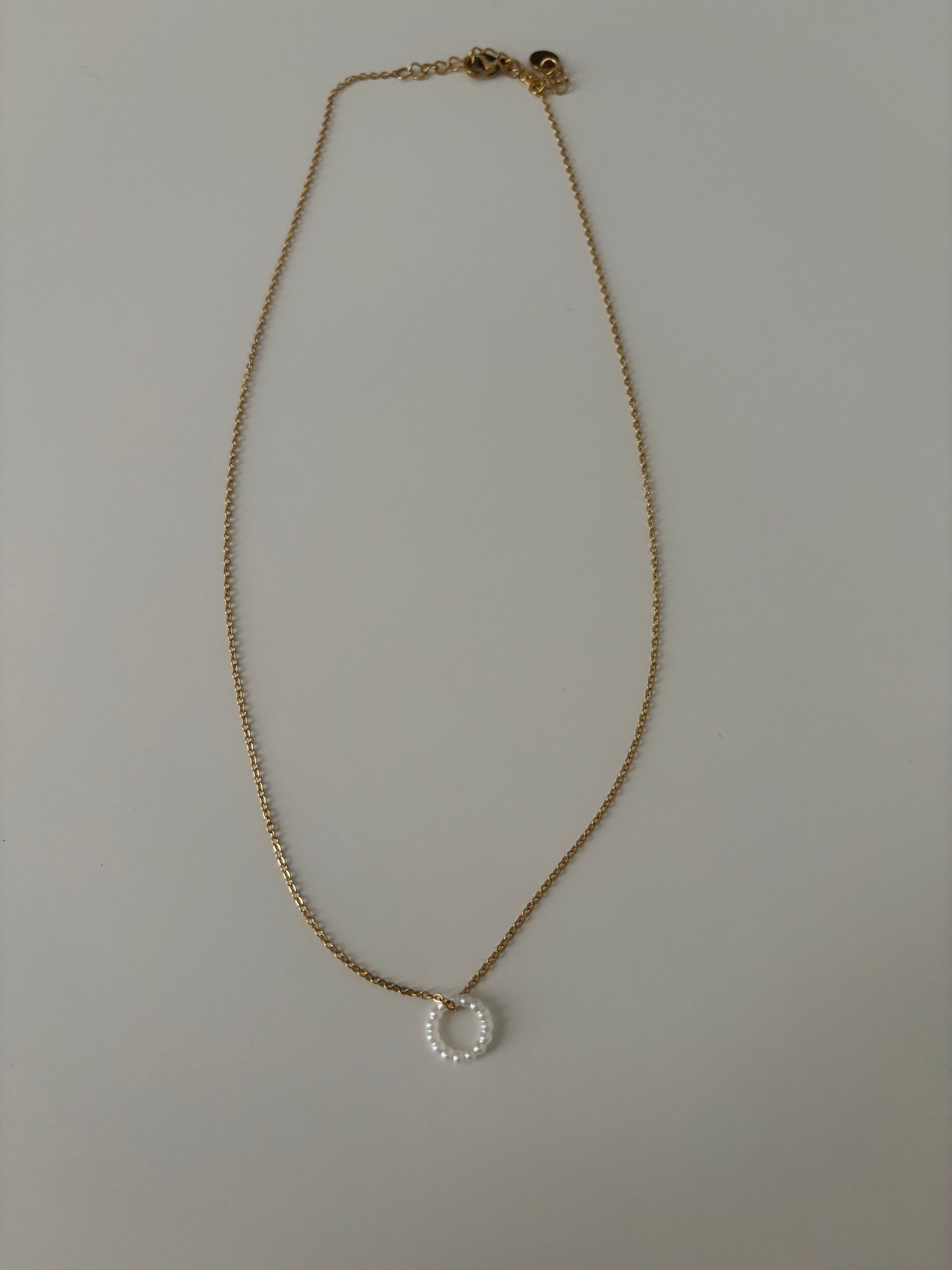 Collier chaîne dorée avec pendentif rond de perle . En acier inoxydable